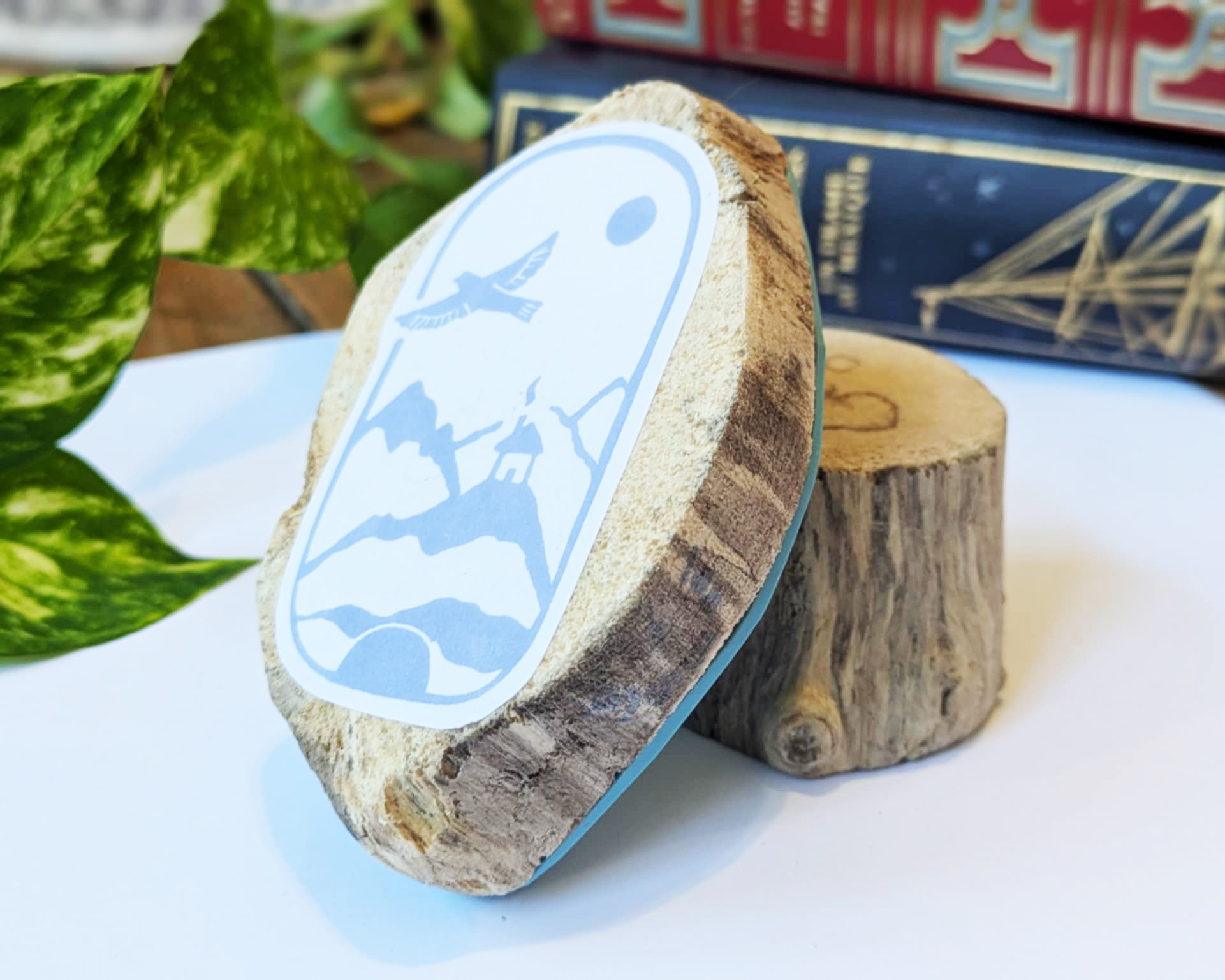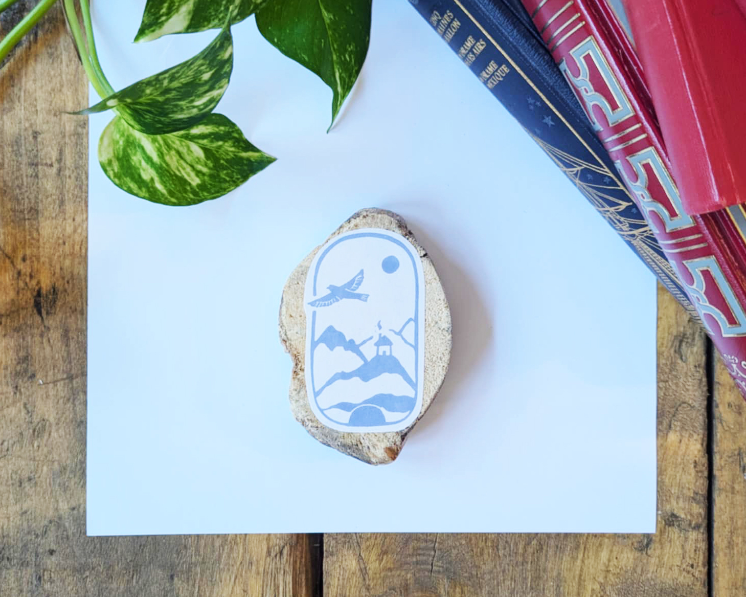 Chaque tampon est gravé à la main à l’aide de gouges traditionnelles. De légères variations par rapport aux photos sont normales et font le charme du travail manuel. Le bois flotté est collecté, découpé et poncé artisanalement, garantissant que chaque support est unique.